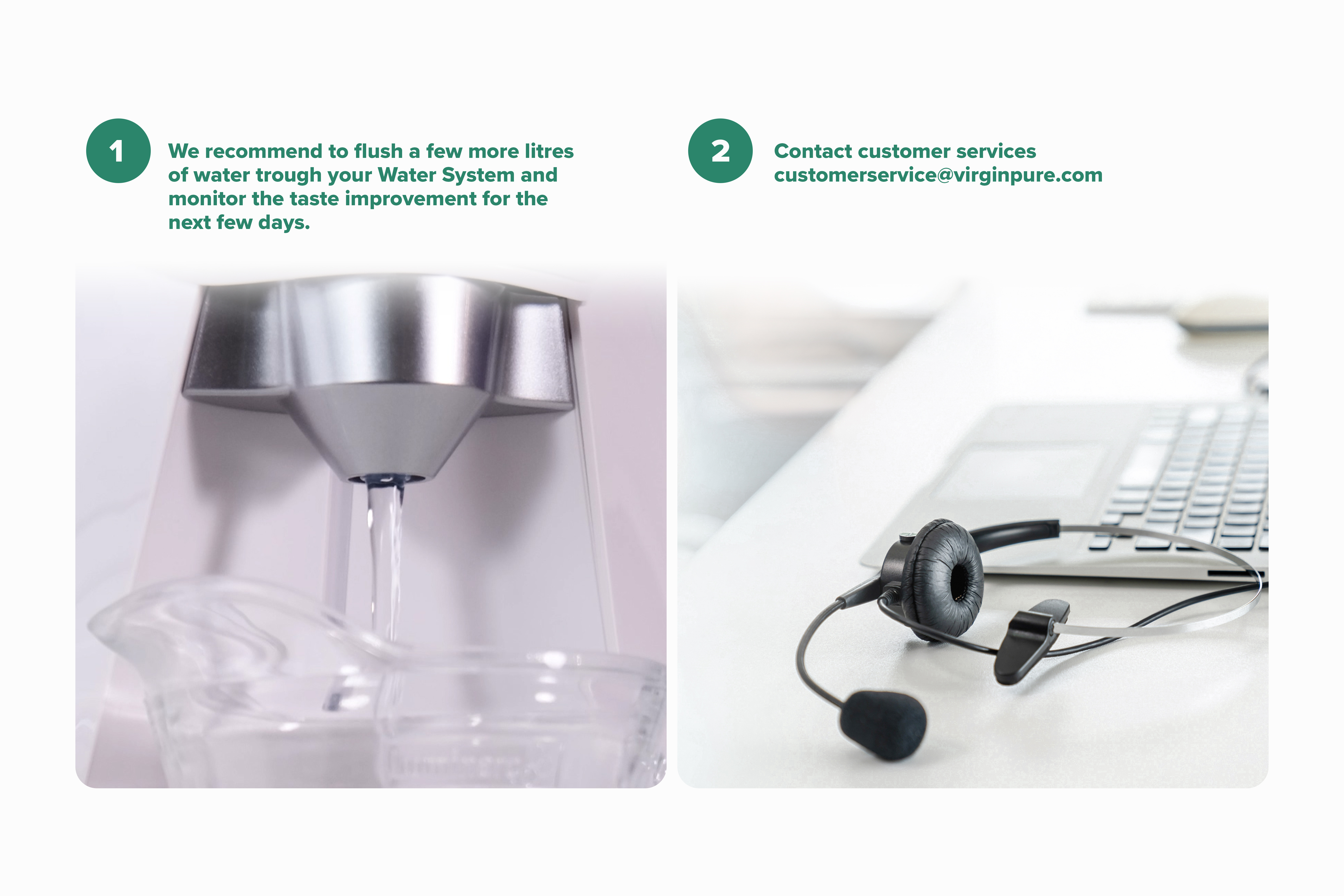 We recommend to flush a few more litres of water trough your Water System and monitor the taste improvement for the next few days.